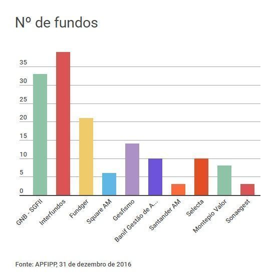 Há duas entidades que ultrapassam a barreira dos 100 milhões de euros em carteira. São elas a GNB – SGFII e a Interfundos. A maior entidade nacional é a GNB – SGFII, com 33 fundos e um valor líquido sob gestão de 1.406,4 milhões de euros. Cresceu 8,3% desde o início de 2016. Dos 33 produtos que gere destaca-se o fundo fechado Fimes Oriente, com um valor em carteira superior a 275 milhões de euros.